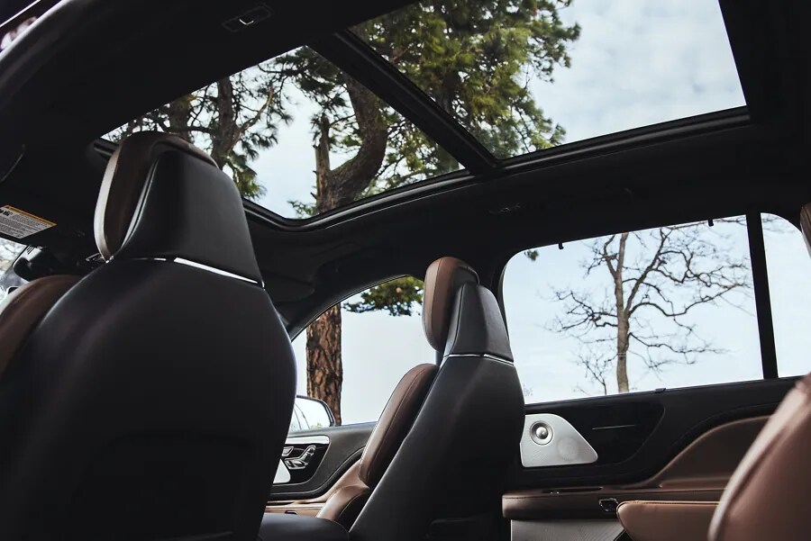 The Lincoln Aviator has an available Air Glide Suspension, which replaces traditional hard coil springs with air bladders. These automatically inflate and deflate to help soften your ride, creating the sensation of riding on air, quite literally. This system allows the vehicle to "kneel" down to greet you as you approach, making getting in and loading cargo more effortless. Plus the suspension will rise and lower based on specific drive modes.