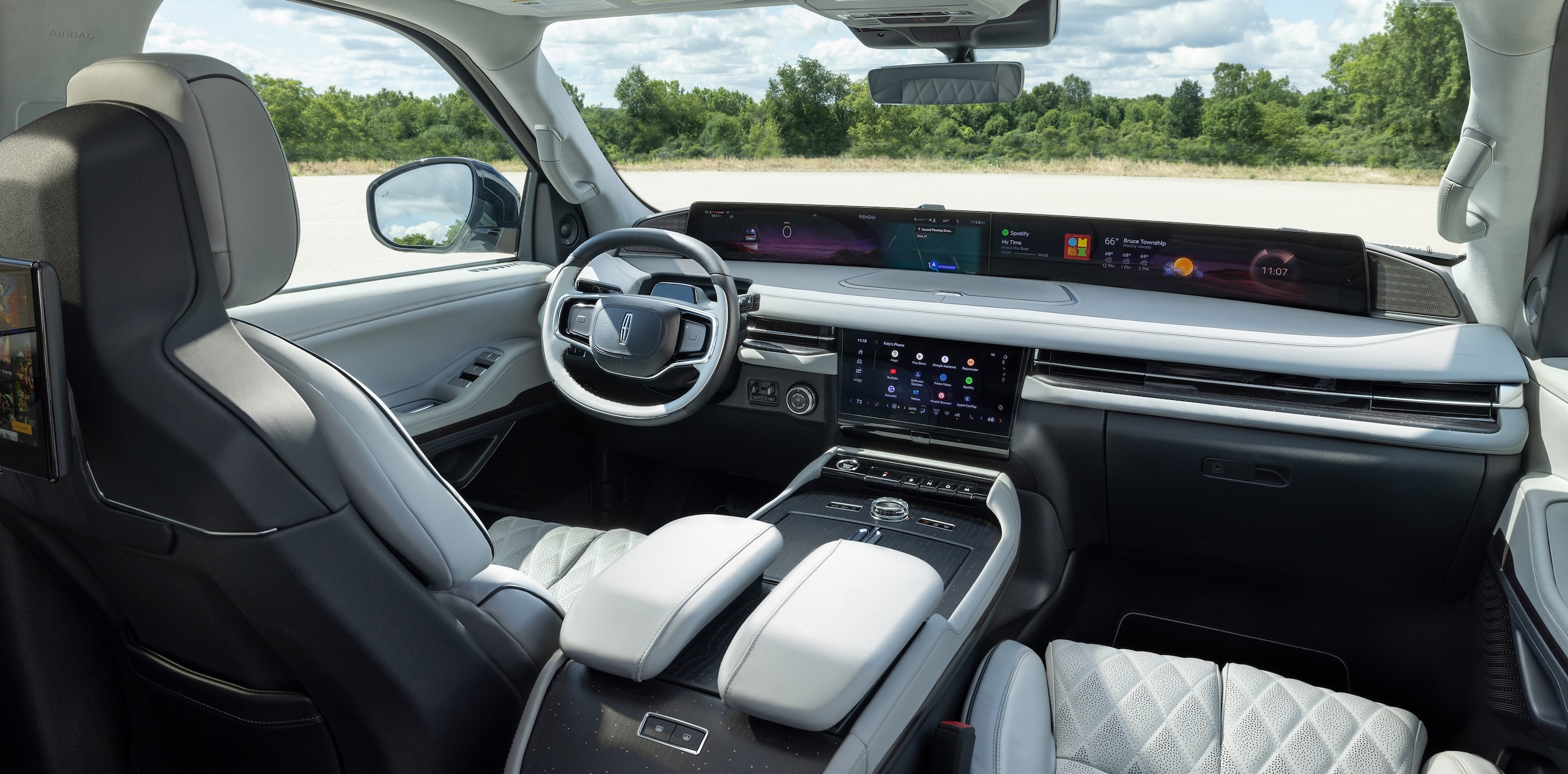 The Navigator L integrates modern technology to enhance your driving experience. The expansive 48-inch panoramic display keeps you informed and entertained, while the 11.1-inch touchscreen offers intuitive controls and access to the Lincoln digital experience. Stay connected with 5G connectivity, Google Maps navigation, and wireless Apple CarPlay and Android Auto. The Revel Ultima 3D Audio System surrounds you in rich, clear sound, making every journey a delight.