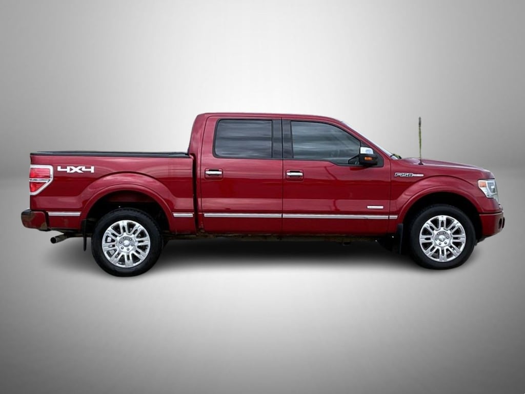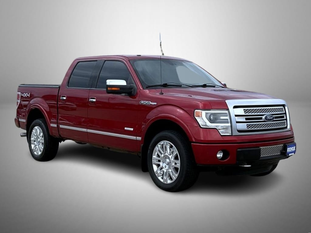 Ruby Red Metallic 2013 Ford F-150 Platinum 4WD 6-Speed Automatic Electronic 3.5L 6 cylinder 4WD, 10 Speakers, 20" Polished Aluminum Wheels, 3.55 Axle Ratio, 4-Wheel Disc Brakes, ABS brakes, Adjustable pedals, Air Conditioning, Alloy wheels, AM/FM radio: SiriusXM, Auto tilt-away steering wheel, Auto-dimming door mirrors, Auto-dimming Rear-View mirror, Automatic temperature control, Black Unique Leather Bucket Seats, Bodyside moldings, Bumpers: body-color, CD player, Compass, Delay-off headlights, Driver door bin, Driver vanity mirror, Dual front impact airbags, Dual front side impact airbags, DVD-Audio, Electronic Stability Control, Equipment Group 700A, Exterior Parking Camera Rear, Front anti-roll bar, Front Bucket Seats, Front Center Armrest, Front dual zone A/C, Front fog lights, Front License Plate Bracket, Front reading lights, Front wheel independent suspension, Fully automatic headlights, Garage door transmitter, GVWR: 7,350 lbs Payload Package, Heated door mirrors, Heated front seats, Heated rear seats, High-Intensity Discharge Headlights, Illuminated entry, Low tire pressure warning, Memory seat, Navigation, Navigation System, Occupant sensing airbag, Outside temperature display, Overhead airbag, Overhead console, Overhead Console w/Single Storage Bin, Panic alarm, Passenger door bin, Passenger vanity mirror, Pedal memory, Power door mirrors, Power driver seat, Power Moonroof, Power passenger seat, Power steering, Power windows, Premium audio system: Sony, Radio data system, Radio: Sony Single-CD w/HD, Rain sensing wipers, Rear Parking Sensors, Rear reading lights, Rear seat center armrest, Rear step bumper, Rear window defroster, Remote keyless entry, Security system, Speed control, Speed-sensing steering, Split folding rear seat, Steering wheel memory, Steering wheel mounted audio controls, SYNC w/MyFord Touch, Tachometer, Telescoping steering wheel, Tilt steering wheel, Traction control, Trailer Brake Controller, Trip computer, Turn signal indicator mirrors, Variably intermittent wipers, Ventilated front seats, 4WD.