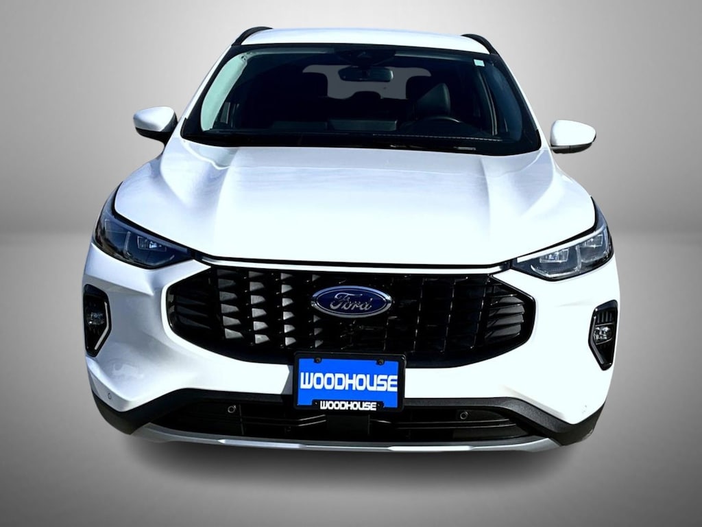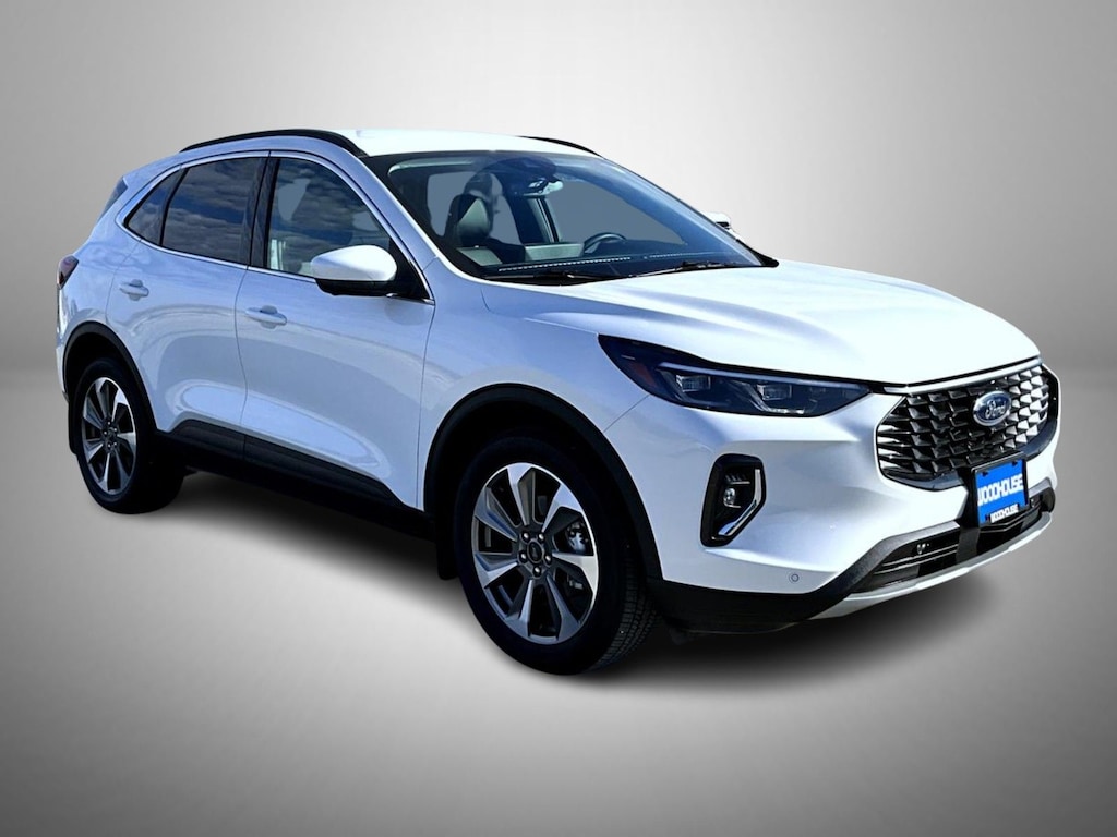 White Metallic 2023 Ford Escape Platinum AWD 8-Speed Automatic 4 cylinder AWD, 2.91 Axle Ratio, 4-Wheel Disc Brakes, 6 Speakers, ABS brakes, Air Conditioning, Alloy wheels, AM/FM radio: SiriusXM, AM/FM Stereo, Auto High-beam Headlights, Auto-dimming Rear-View mirror, Automatic temperature control, Brake assist, Bumpers: body-color, Compass, Delay-off headlights, Driver door bin, Driver vanity mirror, Dual front impact airbags, Dual front side impact airbags, Electronic Fuel Door Release, Electronic Stability Control, Emergency communication system: SYNC 4 911 Assist, Equipment Group 601A, Exterior Parking Camera Rear, FordPass Connect, Four wheel independent suspension, Front & Rear Floor Liners w/o Carpet Mats, Front anti-roll bar, Front Bucket Seats, Front Center Armrest, Front dual zone A/C, Front fog lights, Front License Plate Bracket, Front reading lights, Fully automatic headlights, Garage door transmitter, Heated ActiveX Trimmed Front Sport Contour Bucket Seats, Heated door mirrors, Heated front seats, Heated steering wheel, Illuminated entry, Knee airbag, Low tire pressure warning, Memory seat, Navigation system: Connected Navigation, Neutral Towing Capability, Occupant sensing airbag, Outside temperature display, Overhead airbag, Overhead console, Panic alarm, Passenger door bin, Passenger vanity mirror, Pedestrian Alert Sounder, Power door mirrors, Power driver seat, Power Liftgate, Power passenger seat, Power steering, Power windows, Radio data system, Rain sensing wipers, Rear anti-roll bar, Rear reading lights, Rear seat center armrest, Rear window defroster, Rear window wiper, Remote keyless entry, Security system, Speed control, Speed-sensing steering, Speed-Sensitive Wipers, Split folding rear seat, Spoiler, Steering wheel mounted audio controls, SYNC 4 w/Enhanced Voice Recognition, Telescoping steering wheel, Tilt steering wheel, Traction control, Trip computer, Variably intermittent wipers, Wheels: 19" Machined-Face Aluminum, AWD.