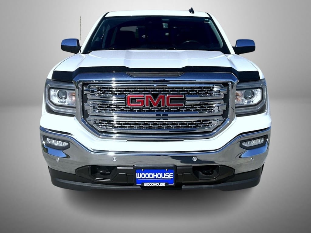 Summit White 2018 GMC Sierra 1500 SLT 4WD 6-Speed Automatic Electronic with Overdrive 5.3L V8 6-Speed Automatic Electronic with Overdrive, 4WD, Jet Black Leather, 10-Way Power Driver's Seat Adjuster, 110-Volt AC Power Outlet, 150 Amp Alternator, 1st & 2nd Row Color-Keyed Carpeted Floor Mats, 2-Speed Active Electronic AutoTrac Transfer Case, 20" x 9" Polished Aluminum Wheels, 4-Wheel Disc Brakes, 4.2" Diagonal Color Display Driver Info Center, 40/20/40 Front Split Bench Seat, 6 Speakers, 6-Speaker Audio System, 6" Rectangular Chromed Tubular Assist Steps, ABS brakes, Adjustable pedals, Air Conditioning, Alloy wheels, AM/FM radio: SiriusXM, Auto-dimming door mirrors, Auto-Dimming Inside Rear-View Mirror, Auto-dimming Rear-View mirror, Automatic temperature control, Auxiliary External Transmission Oil Cooler, Bodyside moldings, Bose Speaker System, Brake assist, Bumpers: chrome, CD player, Chrome Bodyside Moldings, Chrome Door Handles, Chrome Mirror Caps, Color-Keyed Carpeting, Compass, Deep-Tinted Glass, Delay-off headlights, Driver & Front Passenger Illuminated Vanity Mirrors, Driver door bin, Driver vanity mirror, Dual front impact airbags, Dual front side impact airbags, Dual-Zone Automatic Climate Control, Electric Rear-Window Defogger, Electronic Stability Control, Enhanced Driver Alert Package, Exterior Parking Camera Rear, EZ Lift & Lower Tailgate, Floor Mounted Console, Forward Collision Alert, Front & Rear All-Weather Floor Mats, Front anti-roll bar, Front Center Armrest w/Storage, Front dual zone A/C, Front fog lights, Front Frame-Mounted Black Recovery Hooks, Front Full Feature Power Reclining Bucket Seats, Front License Plate Kit, Front reading lights, Front wheel independent suspension, Fully automatic headlights, Garage door transmitter, GMC 4G LTE, GMC Connected Access, HD Radio, Heated & Ventilated Front Bucket Seats, Heated door mirrors, Heated Driver & Front Passenger Seats, Heated front seats, Heavy Duty Suspension, Heavy-Duty Rear Locking Differential, High-Intensity Discharge Headlights, Hill Descent Control, Illuminated entry, Integrated Trailer Brake Controller, IntelliBeam Automatic High Beam On/Off Headlight, Lane Keep Assist, Leather Appointed Seat Trim, Leather Wrapped Heated Steering Wheel, Leather Wrapped Steering Wheel w/Cruise Controls, LED Cargo Box Lighting, LED Tailamps w/Signature, Low Speed Forward Automatic Braking, Low tire pressure warning, Manual Tilt/Telescoping Steering Column, Memory seat, Occupant sensing airbag, Off-Road Suspension Package, OnStar & GMC Connected Services Capable, Outside temperature display, Overhead airbag, Overhead console, Panic alarm, Passenger door bin, Passenger vanity mirror, Power Adjustable Pedals, Power door mirrors, Power driver seat, Power Folding & Adjustable Heated Outside Mirrors, Power passenger seat, Power Sliding Rear Window w/Defogger, Power steering, Power Sunroof, Power windows, Power Windows w/Driver Express Up & Down, Preferred Equipment Group 4SA, Premium audio system: GMC Infotainment System, Radio data system, Radio: AM/FM/GMC Infotainment & Navigation, Radio: AM/FM/GMC Infotainment System, Rear 60/40 Folding Bench Seat (Folds Up), Rear reading lights, Rear seat center armrest, Rear step bumper, Rear Wheelhouse Liners, Rear window defroster, Remote Keyless Entry, Remote keyless entry, Remote Locking Tailgate, Remote Vehicle Starter System, Security system, Single Slot CD/MP3 Player, SiriusXM Satellite Radio, SLT Preferred Package, SLT Premium Package, Speed control, Speed-sensing steering, Split folding rear seat, Steering Wheel Audio Controls, Steering wheel mounted audio controls, Tachometer, Telescoping steering wheel, Theft Deterrent System (Unauthorized Entry), Thin Profile LED Fog Lamps, Tilt steering wheel, Traction control, Trailering Equipment, Trip computer, Turn signal indicator mirrors, Ultrasonic Front & Rear Park Assist, Universal Home Remote, Variably intermittent wipers, Voltmeter, Wheel Locks (Set of 4) (LPO), Wheels: 18" x