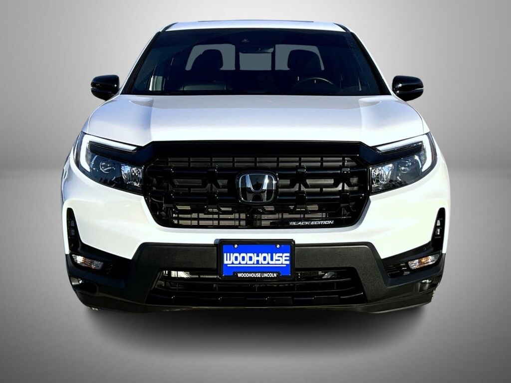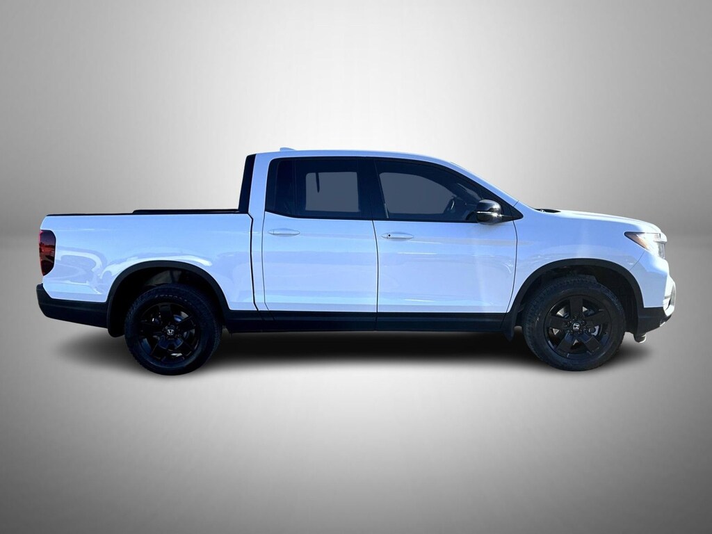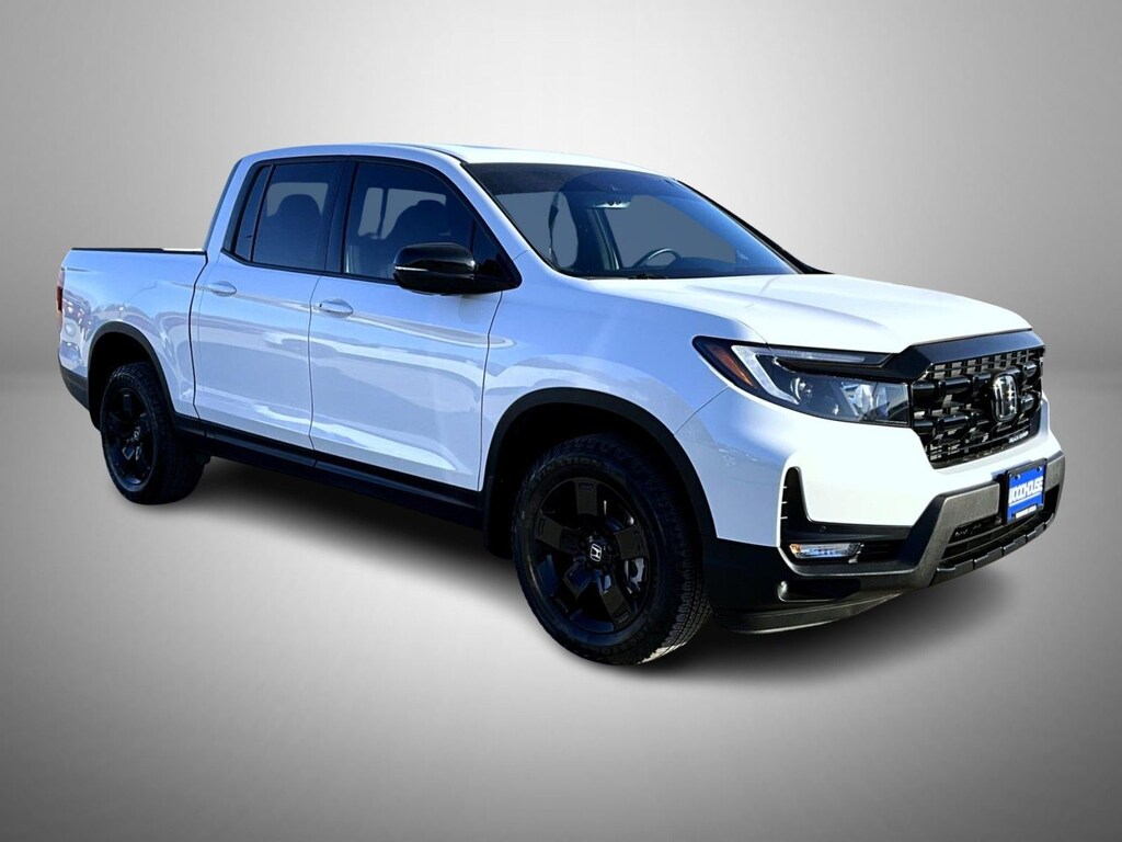 White 2025 Honda Ridgeline Black Edition AWD 9-Speed Automatic 3.5L 6 cylinder Black-Edition Leather, 4-Wheel Disc Brakes, 4.33 Axle Ratio, 8 Speakers, ABS brakes, Air Conditioning, Alloy wheels, AM/FM radio: SiriusXM, Auto High-beam Headlights, Auto-dimming Rear-View mirror, Automatic temperature control, Blind Spot Information (BSI) System warning, Bluetooth® Hands-Free Link, Brake assist, Bumpers: body-color, Compass, Delay-off headlights, Driver door bin, Driver vanity mirror, Driver's Seat Mounted Armrest, Dual front impact airbags, Dual front side impact airbags, Electronic Stability Control, Emergency communication system: HondaLink Assist, Exterior Parking Camera Rear, Four wheel independent suspension, Front anti-roll bar, Front Bucket Seats, Front dual zone A/C, Front fog lights, Front reading lights, Fully automatic headlights, Garage door transmitter: HomeLink, Heated & Ventilated Front Bucket Seats, Heated door mirrors, Heated front seats, Heated rear seats, Heated steering wheel, Honda Satellite-Linked Navigation System, Illuminated entry, Leather Seat Trim, Leather steering wheel, Low tire pressure warning, Memory seat, Navigation system: Honda Satellite-Linked Navigation System, Occupant sensing airbag, Outside temperature display, Overhead airbag, Overhead console, Panic alarm, Passenger door bin, Passenger seat mounted armrest, Passenger vanity mirror, Power door mirrors, Power driver seat, Power moonroof, Power passenger seat, Power steering, Power windows, Radio data system, Radio: 540-Watt Premium Audio System w/8 Speakers, Rear air conditioning, Rear anti-roll bar, Rear reading lights, Rear seat center armrest, Rear step bumper, Rear window defroster, Remote keyless entry, Security system, SiriusXM, Speed control, Speed-sensing steering, Split folding rear seat, Steering wheel mounted audio controls, Tachometer, Telescoping steering wheel, Tilt steering wheel, Traction control, Trip computer, Turn signal indicator mirrors, Variably intermittent wipers, Ventilated front seats, Wheels: 18" Berlina Black Alloy, Black-Edition Leather.