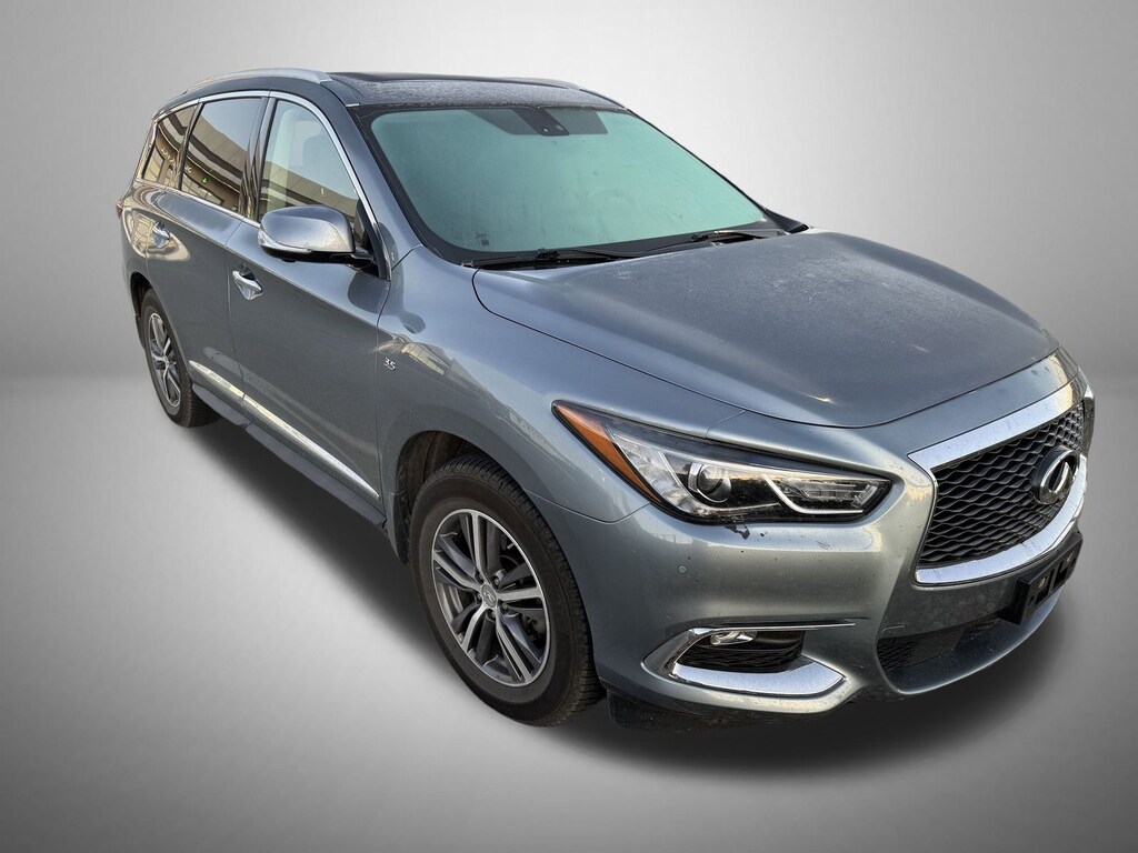 Hagane Blue 2017 INFINITI QX60 AWD Sport-Tuned CVT 3.5L V6 120V Power Outlet, 2-Way Driver's Seat Power Lumbar Support, 3rd row seats: bench, 4-Wheel Disc Brakes, 5.17 Axle Ratio, 6 Speakers, 8" Dual Color Monitors, ABS brakes, Air Conditioning, Alloy wheels, AM/FM radio: SiriusXM, AM/FM/CD/MP3 Audio System, Around View Monitor w/Front & Rear Sonar System, Auto-dimming Rear-View mirror, Automatic temperature control, Bodyside moldings, Brake assist, Bumpers: body-color, Cargo Package w/Premium Plus Pkg, Cargo Protector, CD player, Delay-off headlights, Driver door bin, Driver vanity mirror, Dual front impact airbags, Dual front side impact airbags, Dual Occupant Memory System, Electronic Stability Control, Enhanced Intelligent Key Memory, Entry & Exit Assist, First Aid Kit, Four wheel independent suspension, Front anti-roll bar, Front Bucket Seats, Front Center Armrest w/Storage, Front dual zone A/C, Front fog lights, Front reading lights, Fully automatic headlights, Garage door transmitter, Heated door mirrors, Heated Front Seats, Heated front seats, Heated Steering Wheel, High intensity discharge headlights: Bi-Xenon, Illuminated entry, INFINITI InTouch w/Navigation, Leather Shift Knob, Leather steering wheel, Leather-Appointed Seats, Low tire pressure warning, Occupant sensing airbag, Outside Mirrors w/Reverse Tilt-Down Feature, Outside temperature display, Overhead airbag, Overhead console, Panic alarm, Passenger door bin, Passenger vanity mirror, Power door mirrors, Power driver seat, Power Liftgate, Power moonroof, Power passenger seat, Power steering, Power windows, Premium Package, Premium Plus Package, Radio data system, Radio: AM/FM/CD/DVD w/MP3 Playback Capability, Rain-Sensing Front Windshield Wipers, Rear air conditioning, Rear anti-roll bar, Rear Cargo Cover, Rear reading lights, Rear seat center armrest, Rear window defroster, Rear window wiper, Reclining 3rd row seat, Remote Engine Start, Remote keyless entry, Security system, Single In-Dash CD Player, Single In-Dash CD/DVD Player, Single USB Port, Speed control, Speed-sensing steering, Speed-Sensitive Wipers, Splash Guards (Color-Matched Set of 4), Split folding rear seat, Spoiler, Steering wheel mounted audio controls, Tachometer, Telescoping steering wheel, Theater Package, Tilt steering wheel, Traction control, Trip computer, Turn signal indicator mirrors, Variably intermittent wipers, Voice Recognition For Navigation, Wheels: 18" Triple 5-Spoke Aluminum-Alloy, Wireless Headphones (2).