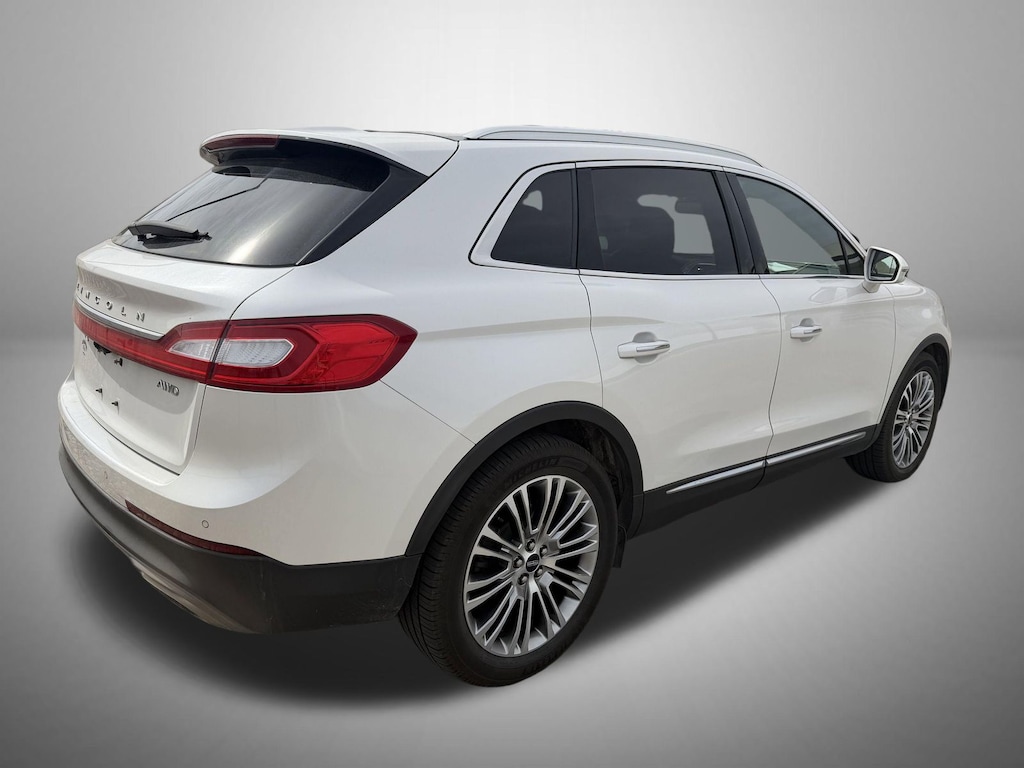 White 2016 Lincoln MKX Reserve AWD 6-Speed Automatic with Select-Shift 3.7L 6 cylinder AWD, 10 Speakers, 3.65 Axle Ratio, 4-Wheel Disc Brakes, ABS brakes, Adaptive suspension, Air Conditioning, Alloy wheels, AM/FM radio: SiriusXM, AM/FM Stereo w/Single CD, Auto-dimming door mirrors, Auto-dimming Rear-View mirror, Automatic temperature control, Blind spot sensor: BLIS warning, Brake assist, Bumpers: body-color, CD player, Compass, Delay-off headlights, Driver door bin, Driver vanity mirror, Dual front impact airbags, Dual front side impact airbags, Electronic Stability Control, Emergency communication system: SYNC 3 911 Assist, Exterior Parking Camera Rear, Four wheel independent suspension, Front anti-roll bar, Front Bucket Seats, Front Center Armrest, Front dual zone A/C, Front fog lights, Front reading lights, Fully automatic headlights, Garage door transmitter: HomeLink, Heated door mirrors, Heated front seats, High-Intensity Discharge Headlights, Illuminated entry, Knee airbag, Low tire pressure warning, Memory seat, Navigation System, Occupant sensing airbag, Outside temperature display, Overhead airbag, Overhead console, Panic alarm, Passenger door bin, Passenger vanity mirror, Power door mirrors, Power driver seat, Power Liftgate, Power moonroof, Power passenger seat, Power steering, Power windows, Prem Lthr-Trimmed Heated/Cooled Bucket Seats (BE), Radio data system, Rear anti-roll bar, Rear Parking Sensors, Rear reading lights, Rear seat center armrest, Rear window defroster, Rear window wiper, Remote keyless entry, Security system, Speed control, Speed-Sensitive Wipers, Split folding rear seat, Spoiler, Steering wheel memory, Steering wheel mounted A/C controls, Steering wheel mounted audio controls, SYNC 3, Tachometer, Telescoping steering wheel, Tilt steering wheel, Traction control, Trip computer, Turn signal indicator mirrors, Variably intermittent wipers, Ventilated front seats, Wheels: 20" Premium Painted Aluminum w/20 Spokes, AWD.