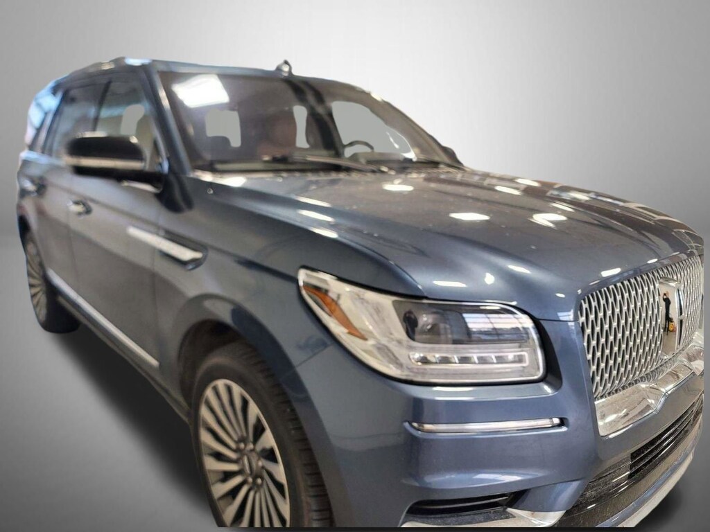 Blue Diamond Metallic 2019 Lincoln Navigator Reserve 4WD 10-Speed Automatic 3.5L 6 cylinder 4WD, Ebony / Russet Leather, 14 Speakers, 3.73 Axle Ratio, 30-Way Perfect Position Seating w/Active Motion, 3rd row seats: split-bench, 4-Wheel Disc Brakes, ABS brakes, Adaptive suspension, Adjustable pedals, Air Conditioning, Alloy wheels, AM/FM radio: SiriusXM, AppLink/Apple CarPlay and Android Auto, Audio memory, Auto High-beam Headlights, Auto tilt-away steering wheel, Auto-dimming door mirrors, Auto-dimming Rear-View mirror, Auto-leveling suspension, Automatic temperature control, Bodyside moldings, Brake assist, Bumpers: body-color, Cargo Package, Chrome Roof Rack w/Crossbars, Compass, Delay-off headlights, Driver door bin, Driver vanity mirror, Driver's Seat Mounted Armrest, Dual front impact airbags, Dual front side impact airbags, Electronic Stability Control, Emergency communication system: 911 Assist, Equipment Group 300A Reserve, Exterior Parking Camera Rear, Four wheel independent suspension, Front anti-roll bar, Front Bucket Seats, Front dual zone A/C, Front fog lights, Front License Plate Bracket, Front reading lights, Fully automatic headlights, Garage door transmitter: HomeLink, Genuine wood dashboard insert, Genuine wood door panel insert, GVWR: 7,625 lbs Payload Package, Heads-Up Display, Heated door mirrors, Heated front seats, Heated rear seats, Heated steering wheel, HVAC memory, Illuminated entry, Leather steering wheel, Lincoln Play, Low tire pressure warning, Memory seat, Navigation System, Occupant sensing airbag, Outside temperature display, Overhead airbag, Overhead console, Panic alarm, Passenger door bin, Passenger seat mounted armrest, Passenger vanity mirror, Pedal memory, Power adjustable rear head restraints, Power door mirrors, Power driver seat, Power Liftgate, Power moonroof: Panoramic Vista Roof, Power passenger seat, Power steering, Power windows, Premium Lthr Htd/Ventilated Low-Back Bucket Seats, Radio data system, Radio: Revel AM/FM/HD/MP3 Audio System, Rain sensing wipers, Rear air conditioning, Rear anti-roll bar, Rear audio controls, Rear reading lights, Rear window defroster, Rear window wiper, Reclining 3rd row seat, Remote keyless entry, Revel Ultima Audio System w/20 Speakers, Roof rack: rails only, Security system, SiriusXM Radio, Speed control, Speed-sensing steering, Speed-Sensitive Wipers, Split folding rear seat, Spoiler, Steering wheel memory, Steering wheel mounted audio controls, SYNC 3 Communications & Entertainment System, Tachometer, Telescoping steering wheel, Tilt steering wheel, Traction control, Trip computer, Turn signal indicator mirrors, Variably intermittent wipers, Ventilated front seats, Wheels: 22" 16-Spoke Ultra Bright Machined Alum, 4WD, Ebony / Russet Leather.