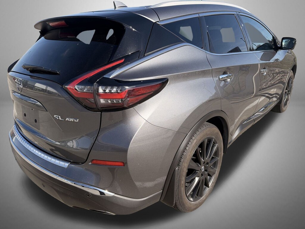 Gun Metallic 2023 Nissan Murano SL AWD CVT with Xtronic Regular Unleaded V-6 3.5 L/213 CVT with Xtronic, AWD, 11 Speakers, 4-Wheel Disc Brakes, 4.667 Axle Ratio, ABS brakes, Air Conditioning, Alloy wheels, AM/FM radio: SiriusXM, AM/FM/CD/MP3/WMA Audio System, Auto High-beam Headlights, Auto-dimming Rear-View mirror, Automatic temperature control, Blind Spot Warning, Brake assist, Bumpers: body-color, Cargo Area Protector, Cargo Net, Cargo Package, Carpeted Floor Mats & Carpeted Cargo Mat, CD player, Child-Seat-Sensing Airbag, Delay-off headlights, Driver door bin, Driver vanity mirror, Dual front impact airbags, Dual front side impact airbags, Electronic Stability Control, Exterior Parking Camera Rear, First Aid Kit, Four wheel independent suspension, Front anti-roll bar, Front Bucket Seats, Front Center Armrest, Front dual zone A/C, Front fog lights, Front reading lights, Fully automatic headlights, Garage door transmitter: HomeLink, Heated door mirrors, Heated Front Bucket Seats, Heated front seats, Heated rear seats, Heated steering wheel, Illuminated entry, Illuminated Kick Plates, Illuminated Kick Plates (PIO), Knee airbag, Leather-Appointed Seat Trim, Low tire pressure warning, Memory seat, Navigation system: NissanConnect Navigation, NissanConnect featuring Apple CarPlay and Android Auto, Occupant sensing airbag, Outside temperature display, Overhead airbag, Overhead console, Panic alarm, Passenger door bin, Passenger vanity mirror, Power door mirrors, Power driver seat, Power Liftgate, Power passenger seat, Power steering, Power windows, Radio data system, Rear anti-roll bar, Rear Bumper Protector, Rear reading lights, Rear seat center armrest, Rear side impact airbag, Rear window defroster, Rear window wiper, Remote keyless entry, Retractable Cargo Cover, Security system, Speed control, Speed-sensing steering, Speed-Sensitive Wipers, Splash Guards (B92), Split folding rear seat, Spoiler, Steering wheel mounted audio controls, Tachometer, Telescoping steering wheel, Tilt steering wheel, Traction control, Trip computer, Turn signal indicator mirrors, Variably intermittent wipers, Wheels: 20" Machined Aluminum-Alloy, Wheels: 20" Satin Black Alloy, CVT with Xtronic, AWD.