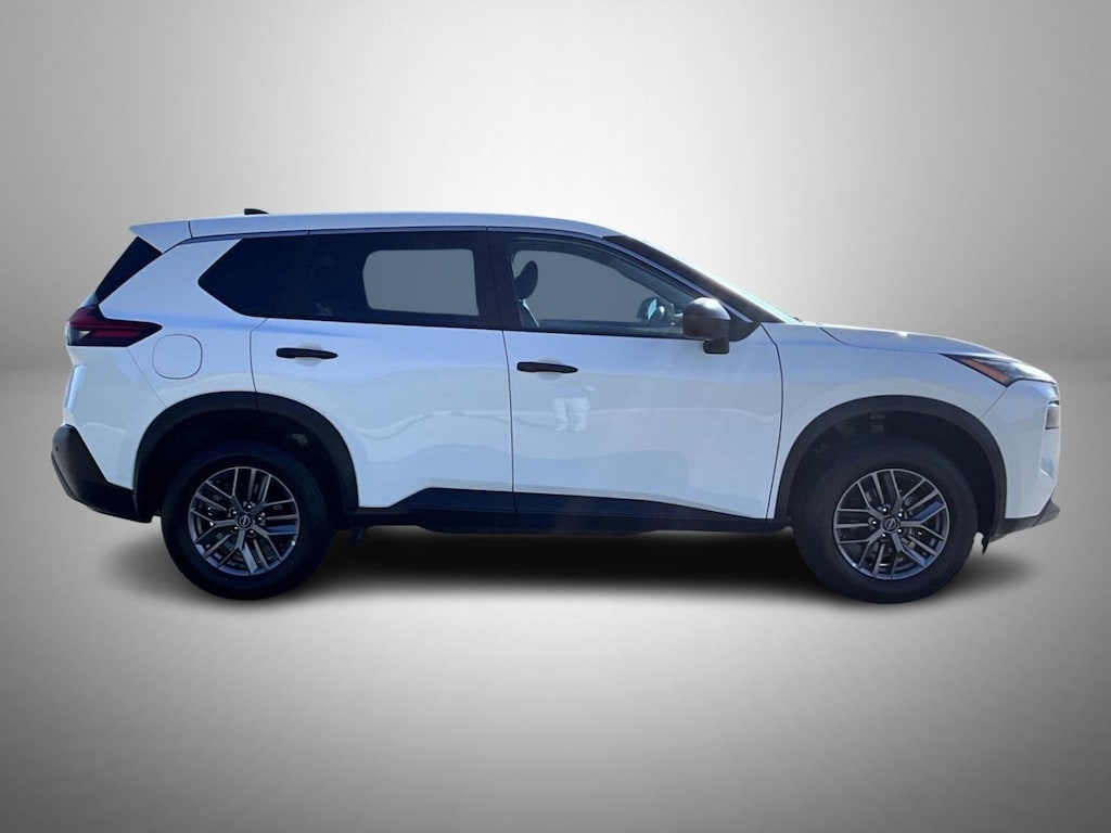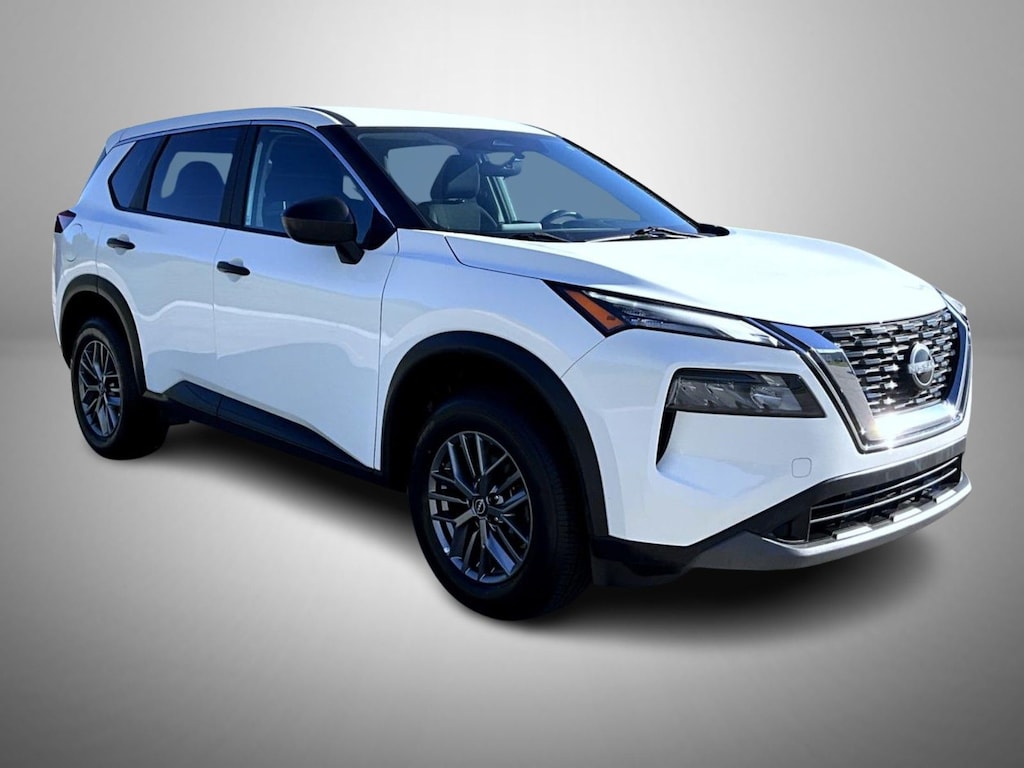 Glacier White 2023 Nissan Rogue S AWD CVT with Xtronic 1.5L I3 Turbocharged DOHC 12V LEV3-ULEV50 201hp AWD, 17" Aluminum Alloy Wheels, 4 Speakers, 4-Wheel Disc Brakes, 5.604 Axle Ratio, ABS brakes, Air Conditioning, Alloy wheels, AM/FM Radio, AM/FM radio: SiriusXM, Auto High-beam Headlights, Blind Spot Warning, Brake assist, Bumpers: body-color, Cloth Seat Trim, Delay-off headlights, Driver door bin, Driver vanity mirror, Dual front impact airbags, Dual front side impact airbags, Electronic Stability Control, Four wheel independent suspension, Front anti-roll bar, Front Bucket Seats, Front Center Armrest, Front reading lights, Fully automatic headlights, Illuminated entry, Knee airbag, Low tire pressure warning, NissanConnect featuring Apple CarPlay and Android Auto, Occupant sensing airbag, Outside temperature display, Overhead airbag, Overhead console, Panic alarm, Passenger door bin, Passenger vanity mirror, Power door mirrors, Power steering, Power windows, Radio data system, Rear anti-roll bar, Rear Parking Sensors, Rear seat center armrest, Rear side impact airbag, Rear window defroster, Rear window wiper, Remote keyless entry, Speed control, Speed-Sensitive Wipers, Split folding rear seat, Spoiler, Steering wheel mounted audio controls, Tachometer, Telescoping steering wheel, Tilt steering wheel, Traction control, Trip computer, Variably intermittent wipers, AWD.