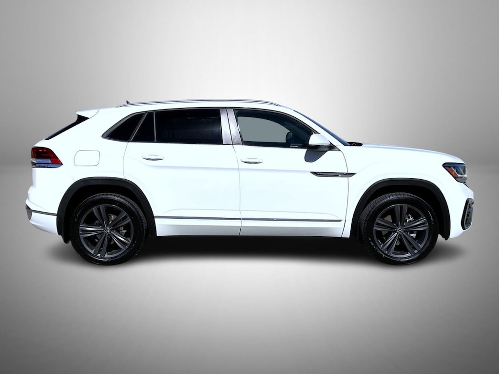 Pure White 2021 Volkswagen Atlas Cross Sport 3.6L V6 SE w/Technology R-Line AWD 8-Speed Automatic with Tiptronic 3.6L 6 cylinder 3.60 Axle Ratio, 4-Wheel Disc Brakes, 6 Speakers, ABS brakes, Air Conditioning, Alloy wheels, AM/FM radio: SiriusXM with 360L, Auto-dimming Rear-View mirror, Automatic temperature control, Brake assist, Bumpers: body-color, Compass, Delay-off headlights, Driver door bin, Driver vanity mirror, Dual front impact airbags, Dual front side impact airbags, Electronic Stability Control, Emergency communication system: VW Car-Net services (capabilities require enrollment or subscription), Exterior Parking Camera Rear, Four wheel independent suspension, Frameless Self-Dimming Rearview Mirror, Front anti-roll bar, Front Bucket Seats, Front Center Armrest, Front dual zone A/C, Front fog lights, Front reading lights, Fully automatic headlights, Heated Comfort Front Bucket Seats, Heated door mirrors, Heated front seats, Heavy Duty Trunk Liner w/VW CarGo Blocks, Illuminated entry, Leather Shift Knob, Low tire pressure warning, Occupant sensing airbag, Outside temperature display, Overhead airbag, Overhead console, Panic alarm, Panoramic Sunroof Package, Passenger door bin, Passenger vanity mirror, Perforated V-Tex Leatherette Seating Surfaces, Power door mirrors, Power driver seat, Power Liftgate, Power steering, Power Tilting & Sliding Panoramic Sunroof, Power windows, Radio data system, Radio: MIB3 Composition Media w/8" Touchscreen, Rain sensing wipers, Rear anti-roll bar, Rear reading lights, Rear seat center armrest, Rear window defroster, Rear window wiper, Remote keyless entry, Roof rack: rails only, Rubber Mats Kit, Security system, Speed control, Speed-sensing steering, Split folding rear seat, Spoiler, Sport steering wheel, Standard Suspension, Steering wheel mounted audio controls, Tachometer, Telescoping steering wheel, Tilt steering wheel, Traction control, Trip computer, Turn signal indicator mirrors, Variably intermittent wipers, VW Care, Wheels: 20" Twin 5-Spoke Dark Graphite Alloy.